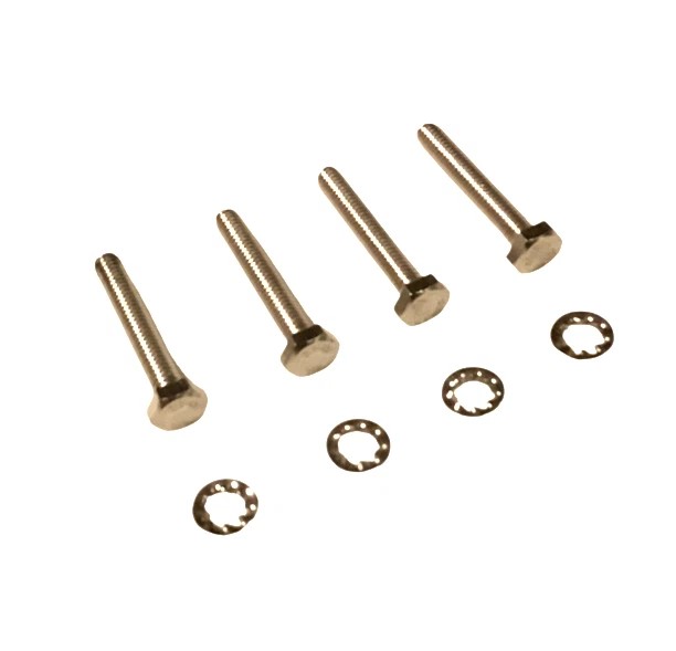 Lot de 4 vis M4 x 25 mm en inox avec rondelles JZ (éventail), spécialement adaptées pour la fixation de la pompe à essence et de la bobine sur cyclomoteurs Solex.