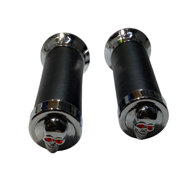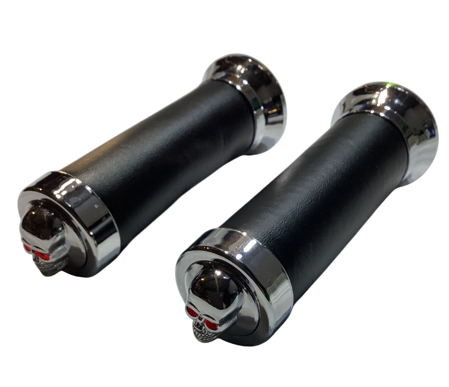 Poignées en simili cuir avec embouts chromés et logo "tête de mort".