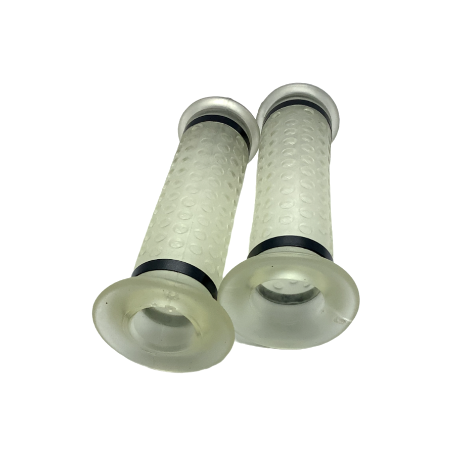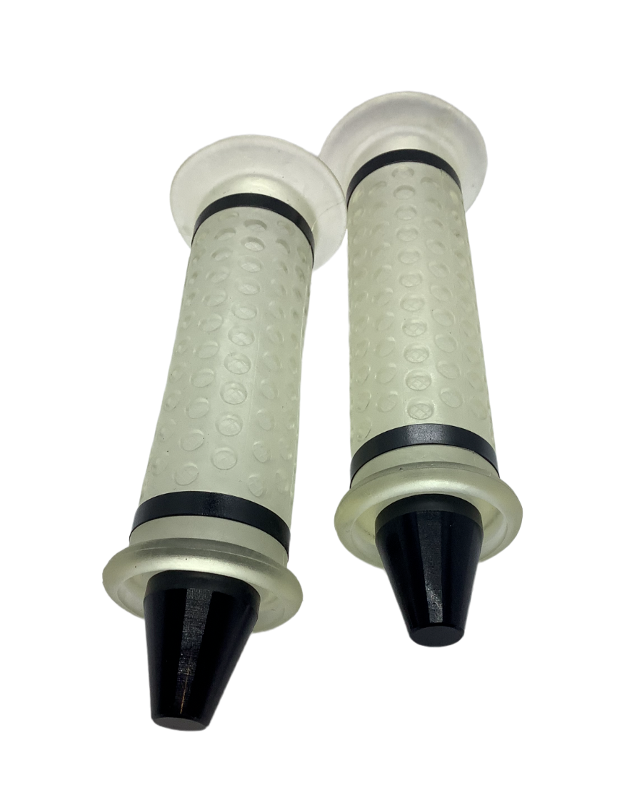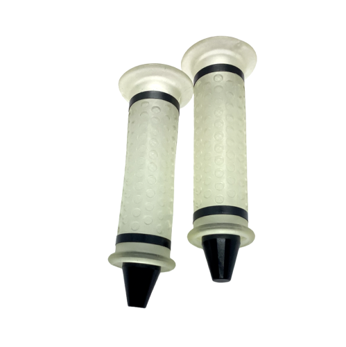 Poignées en caoutchouc transparent avec embouts conique couleur noire .