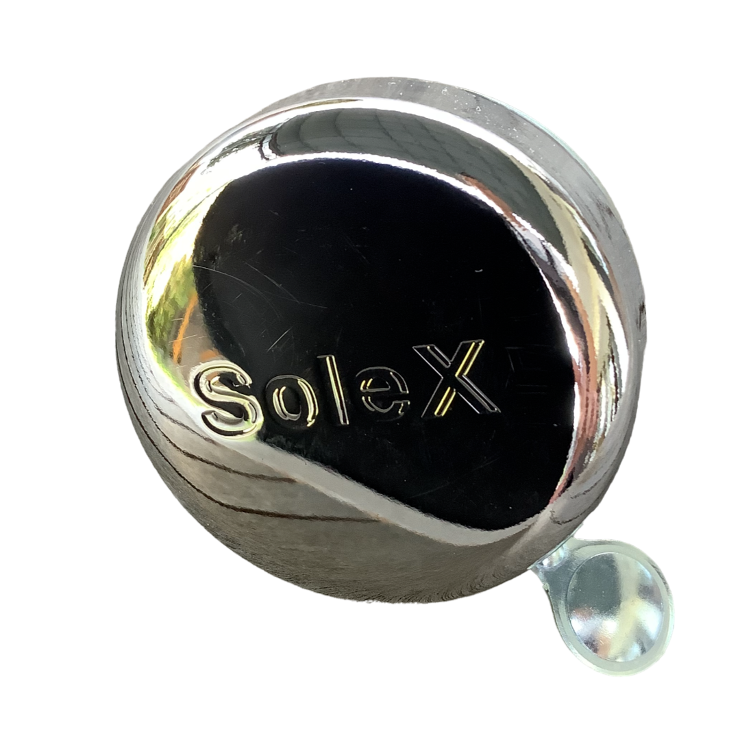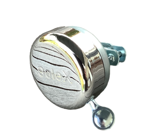 Sonnette chromé avec inscription SOLEX sur le dessus.