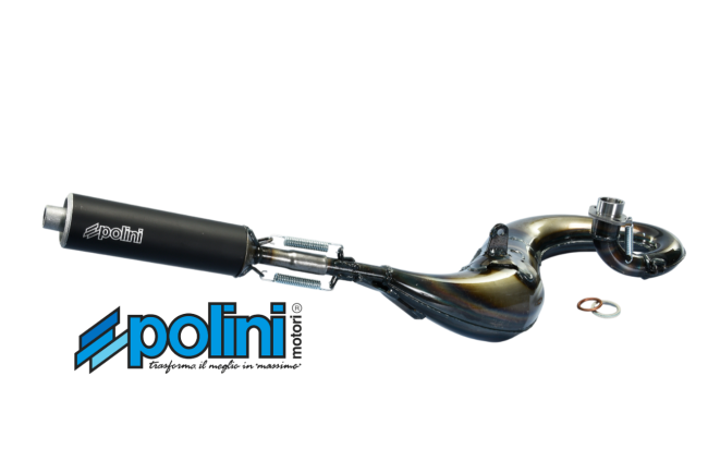 Produit officiel Polini (Réf. 200.0305), échappement Sport hautes performances pour cyclomoteurs Peugeot. Idéal pour améliorer la reprise et les régimes moteurs, avec un look racing.
