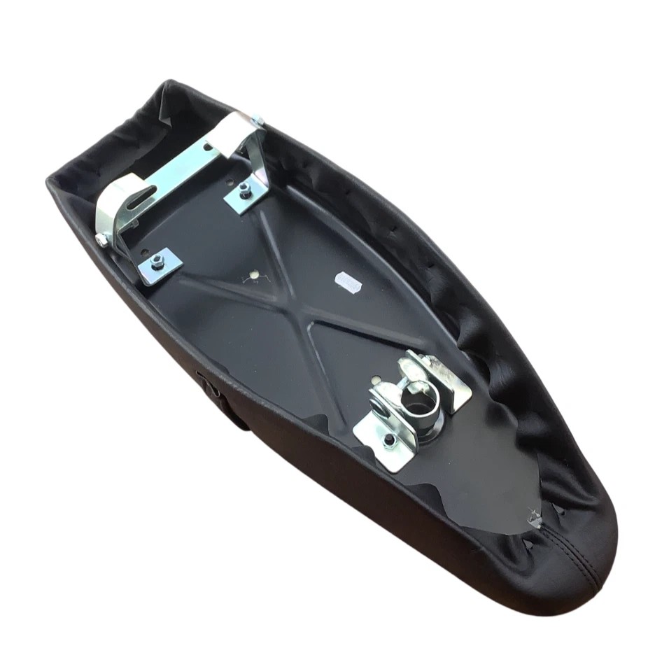 Selle biplace noire (noir profond), adaptable sur de nombreux cyclomoteurs Peugeot, MBK et Motobécane. Idéale pour une restauration soignée ou une préparation au look sobre et élégant.