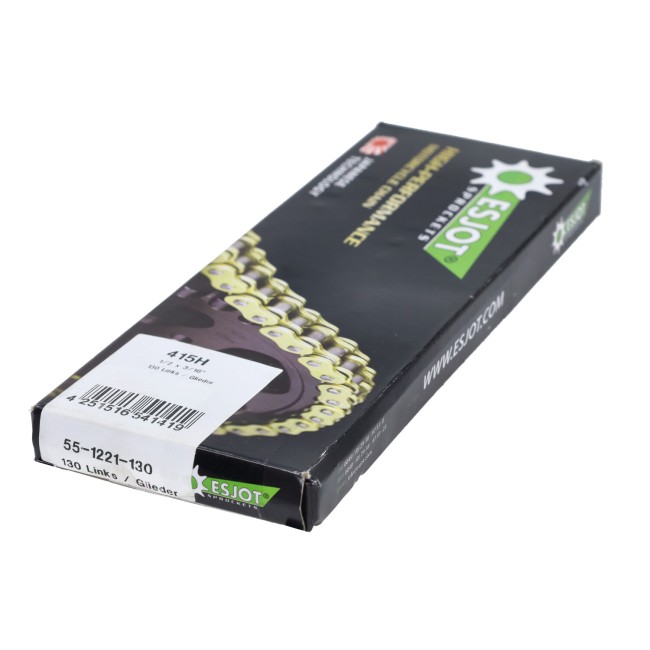 Optimisez la transmission de votre Peugeot 103 avec cette chaîne ESJOT type 415 – 3/16 – 130 maillons, conçue pour garantir fiabilité, longévité et résistance à l’allongement.