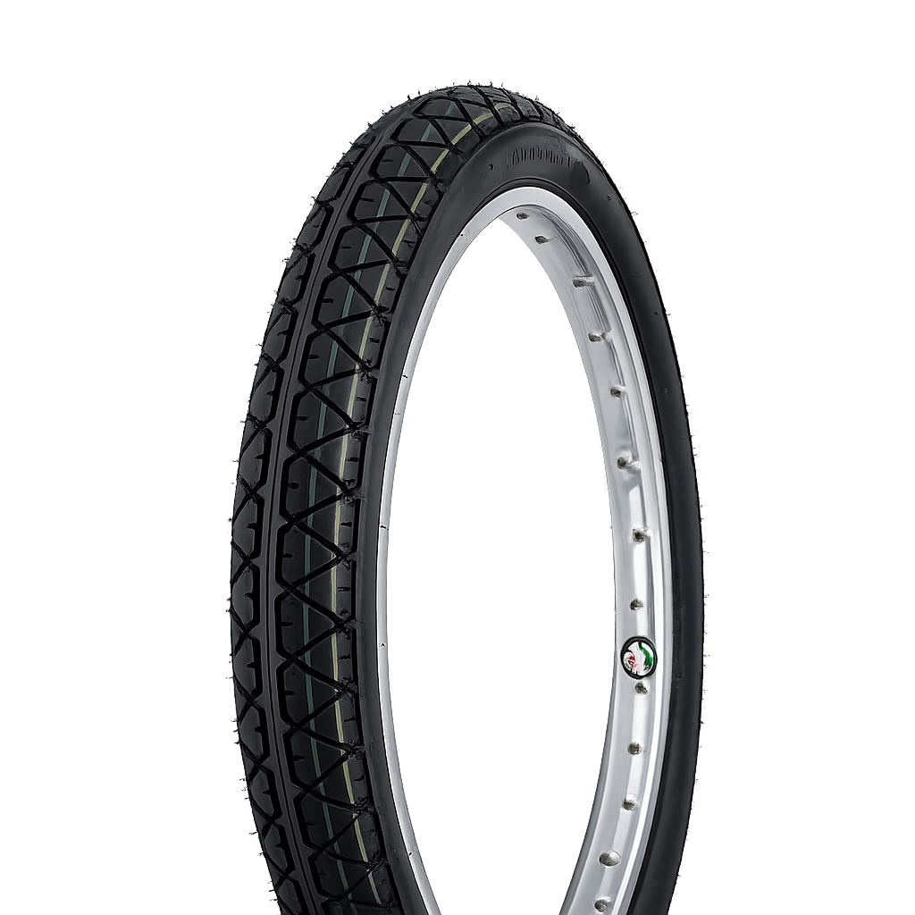 Ce pneumatique est une refabrication reprenant le profil du célèbre pneu des années 80 : le VM100 de Michelin, monté d’origine sur de nombreux cyclomoteurs. Ce design emblématique est apprécié pour son style vintage et sa bonne tenue de route, ce qui en fait un choix idéal pour les restaurations ou l’utilisation quotidienne sur cyclomoteur.